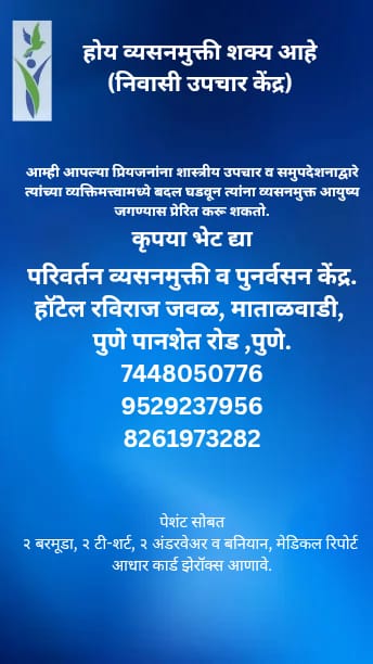 08048047774 - De Addiction Center Khanapur Pune | Alcohol De Addiction Center Khanapur Pune | De Addiction Center in Panshet | Alcohol De Addiction Center Panshet | De Addiction Center in Khanapur | Alcohol De Addiction Center in Khanapur. “ होय, व्यसनमुक्ती शक्य आहे” ( निवासी उपचार केंद्र) 'आम्ही आपल्या प्रियजनांना शास्त्रीय उपचार व समुपदेशना द्वारे त्यांच्या व्यक्तिमत्वामधे बदल घडवून त्यांना व्यसमुक्त आयुष्य जगण्यास प्रेरित करू शकतो कृपया भेट द्या